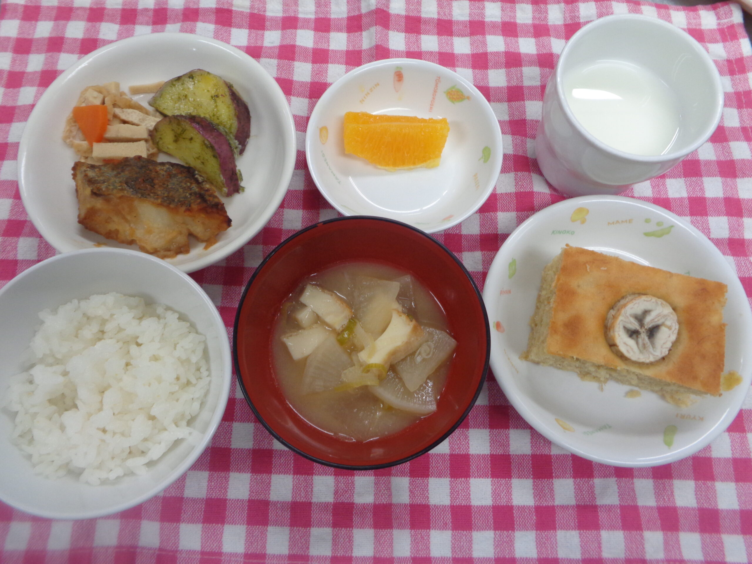 タラのバター醤油焼き、凍り豆腐と人参の煮物、磯辺さつま芋は新メニューでした!子どもたちも良く食べていました!