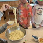 今日は、卒園児最後の登園日。一年間、東京都のすくわく事業で味噌作りや三色食品群について学んできましたが、そのまとめとして『うどん打ち』を楽しみました。楽しむ中で食の大切さを知る機会を来年度も作っていきたいと思います。