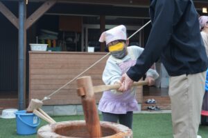 幼児さんは一人ずつ搗きました